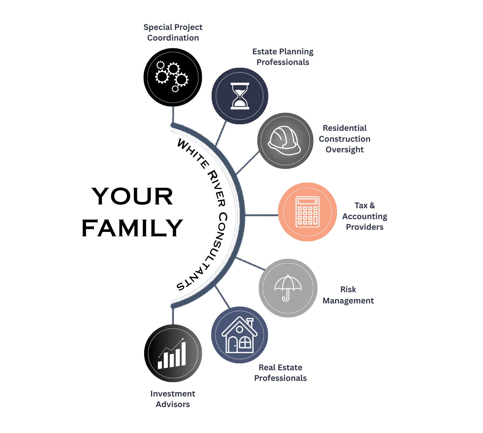 At White River Consultants, our primary role is to serve as your Family Office Integrator — the outsourced COO and Chief of Staff for your family.